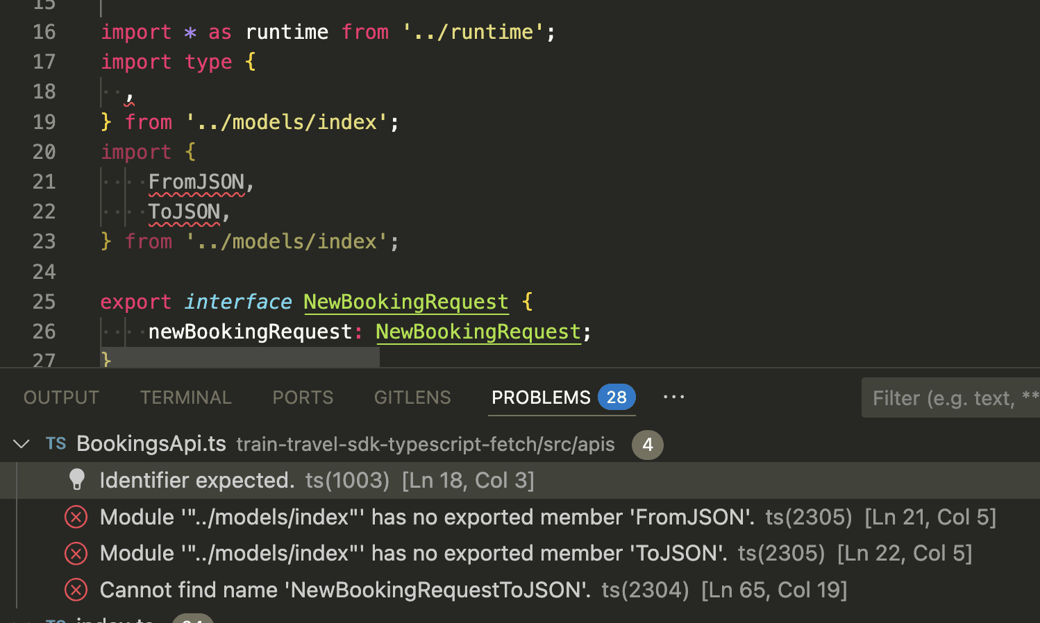 There’s an extra issue with OpenAPI Generator’s typescript-node SDK, in that its content negotiation strategy (looking at Accept and Content-Type headers) is overly simplistic. It checks if the content type includes application/json with the line if (produces.indexOf('application/json') >= 0) { which is too broad, because application/jsonl will match that condition. If an API returns application/jsonl it will try to parse the response as a single JSON object instead of a stream of JSON objects, which will lead to runtime errors and frustrated developer-users.
